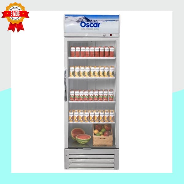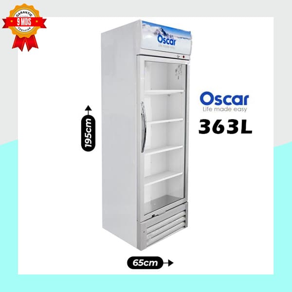 0CFALe Refroidisseur/Vitrine OSCAR de 363 litres est l’équipement idéal pour la présentation et la vente de boissons et produits frais. Avec sa porte vitrée et son éclairage interne, il maximise l’attrait de vos produits. Ses dimensions imposantes (195 cm de hauteur et 65 cm de largeur) le rendent parfait pour les magasins, restaurants ou bars. Il est couvert par une garantie de 9 mois.