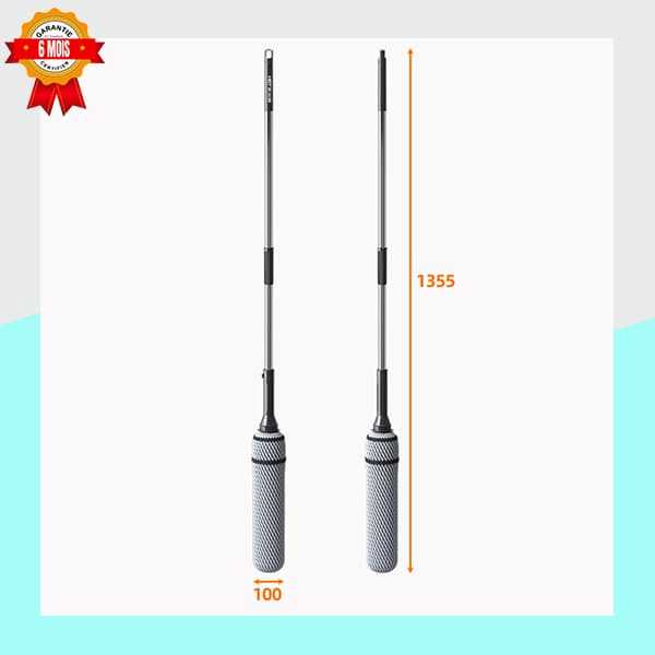 Manche Télescopique Réglable : Le manche en acier inoxydable est ajustable pour atteindre une longueur maximale d’environ 135,5 cm, assurant une posture de nettoyage ergonomique pour toutes les tailles.