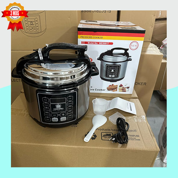 Cuisinez jusqu’à 70 % plus vite avec cet autocuiseur électrique programmable de Silver Crest. Doté d’un panneau de commande numérique, il remplace plusieurs appareils : cocotte-minute, mijoteuse, cuiseur à riz, et plus encore. Ses 1000W garantissent une cuisson rapide et saine. Livré avec ses accessoires essentiels. Garantie 3 mois incluse.