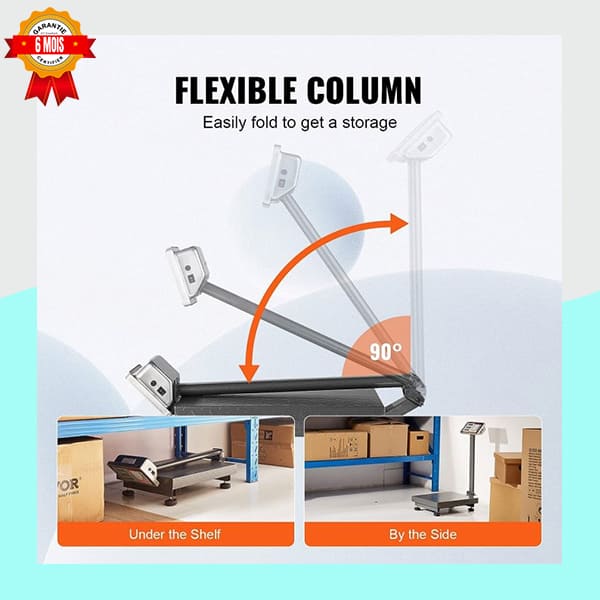 Design Pliable (Jusqu’à 90°) : La colonne de l’afficheur se rabat pour un transport facile et un gain de place considérable lors du rangement (voir image).