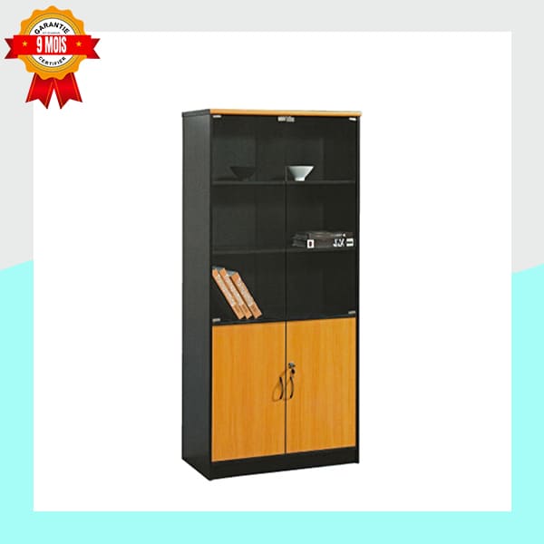 Conçue pour un usage professionnel ou domestique, cette armoire offre un grand espace de rangement. La partie supérieure est dotée de deux portes en verre qui vous permettent de mettre en valeur vos livres ou vos collections tout en les protégeant de la poussière. La partie inférieure est équipée de deux portes pleines qui sont idéales pour dissimuler les documents ou les fournitures de bureau que vous ne souhaitez pas laisser à la vue de tous.