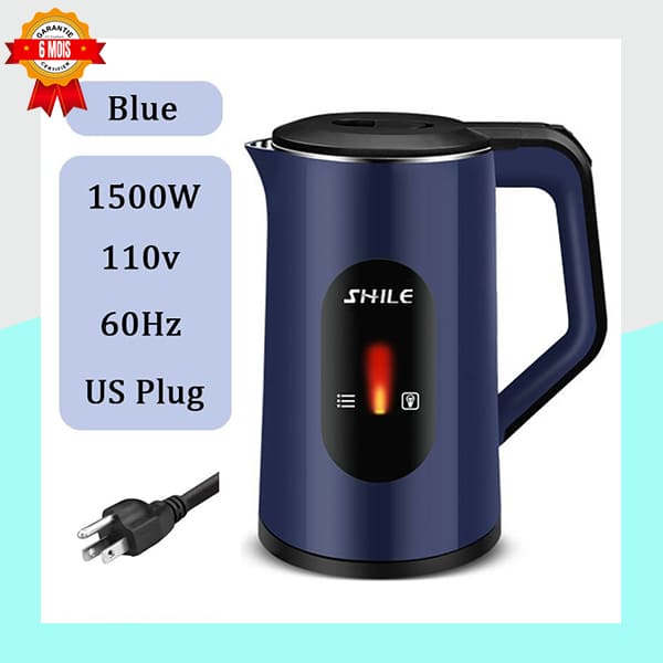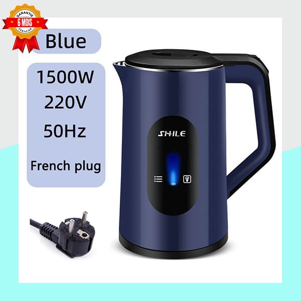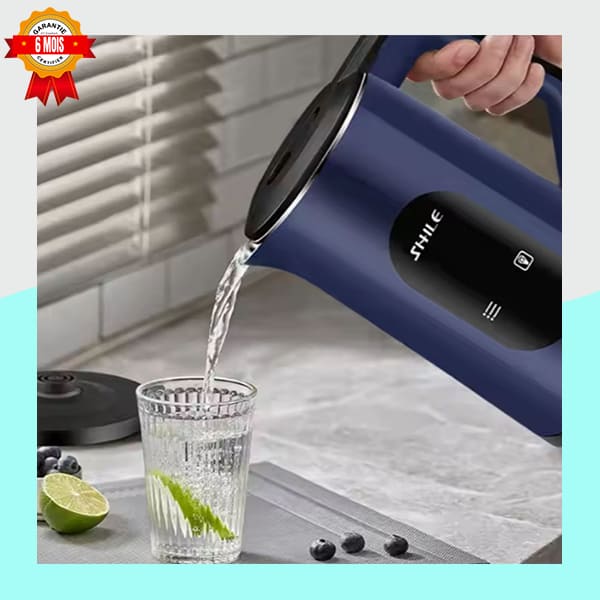 Simplifiez-vous la vie avec la bouilloire électrique SHILE. Grâce à sa puissance de 1500W, elle porte l’eau à ébullition en un temps record, vous faisant gagner de précieuses minutes chaque matin. Son corps blanc mat et son design épuré, rehaussé d’un voyant lumineux bleu lors de l’utilisation, en font un appareil à la fois performant et esthétique. Elle est parfaitement adaptée aux standards électriques locaux, étant livrée avec une prise de type français compatible 220V/50Hz.