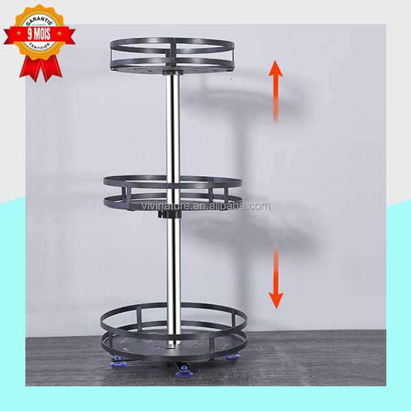 Cette étagère de rangement pivotante est une solution astucieuse pour optimiser l'espace dans votre cuisine ou salle de bain. Son design à trois niveaux, avec des paniers ronds et une structure en métal, est à la fois moderne et fonctionnel. Elle peut être placée dans un placard, sur un comptoir, ou même dans un coin pour un accès facile à tous vos produits.