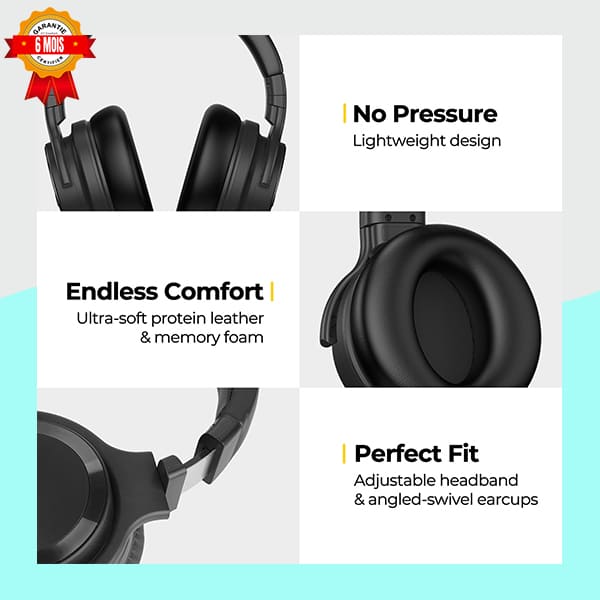 Équipé de la technologie Bluetooth 4.2 avec EDR (Enhanced Data Rate), ce casque assure une connexion sans fil stable et rapide à vos appareils. Profitez d’une écoute fluide et sans coupure, avec une portée sans fil décente.