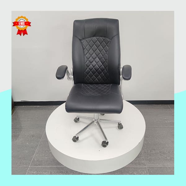Alliant style et confort, cette chaise de bureau ergonomique est conçue pour améliorer votre productivité et votre bien-être au travail. Son revêtement en similicuir noir est non seulement élégant, mais aussi facile à nettoyer et résistant. Le dossier et l’assise matelassés avec un motif en losanges ajoutent une touche de sophistication.