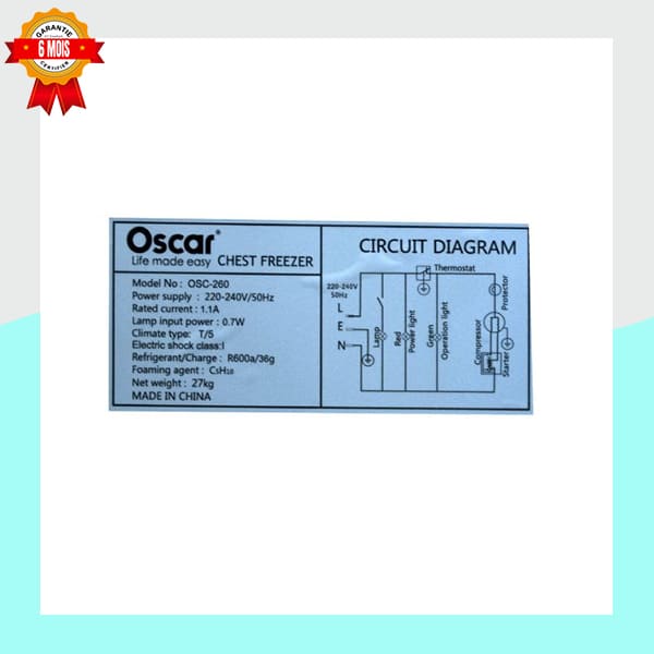 • Fiabilité Oscar : Conçu pour durer, ce congélateur est un produit authentique Oscar, gage de qualité et de performance.