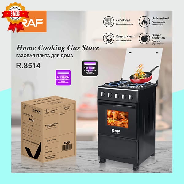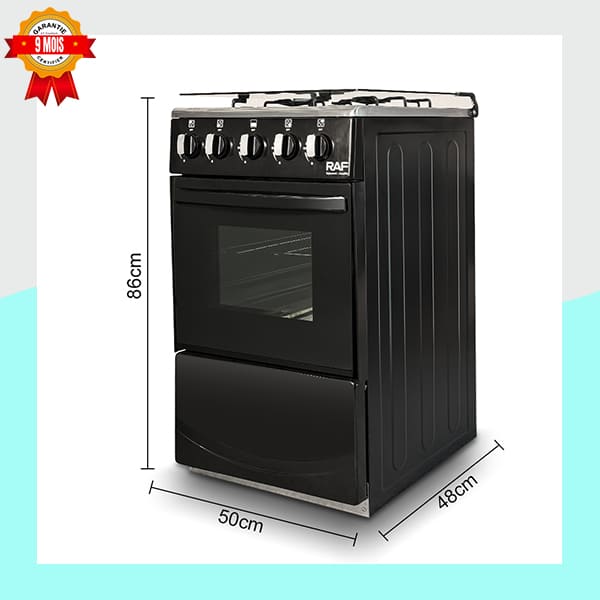 La cuisinière à gaz RAF modèle R.8514 est conçue pour répondre à tous vos besoins culinaires, du mijotage délicat à la cuisson de grands rôtis. Son design noir élégant et ses dimensions optimisées en font un excellent choix pour les foyers modernes.