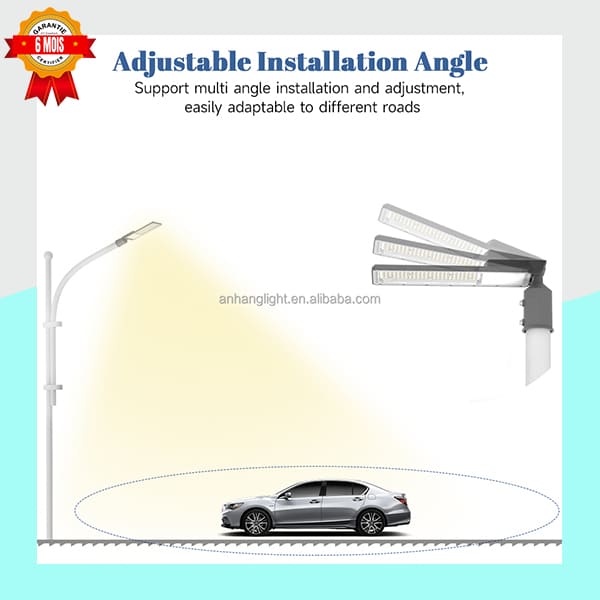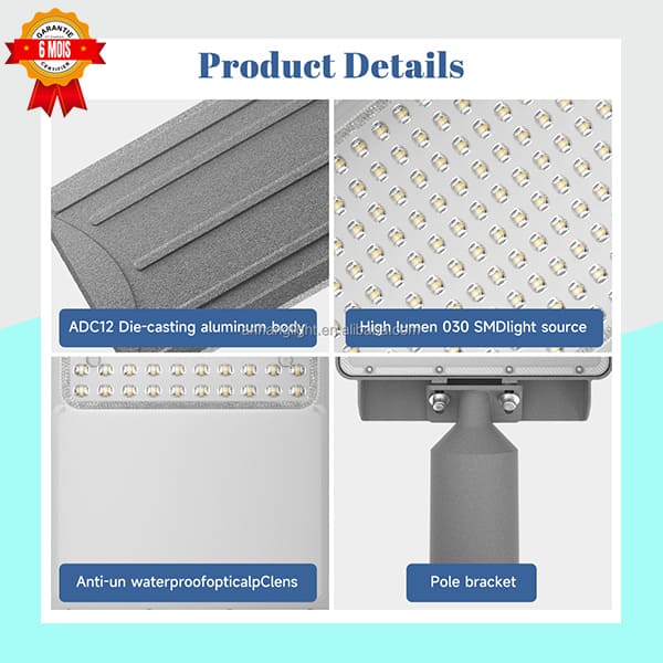 Source Lumineuse Avancée : Équipé de puces LED 030 SMD à haut lumen, ce luminaire offre une intensité lumineuse supérieure, idéale pour les routes, parkings, jardins ou zones industrielles.