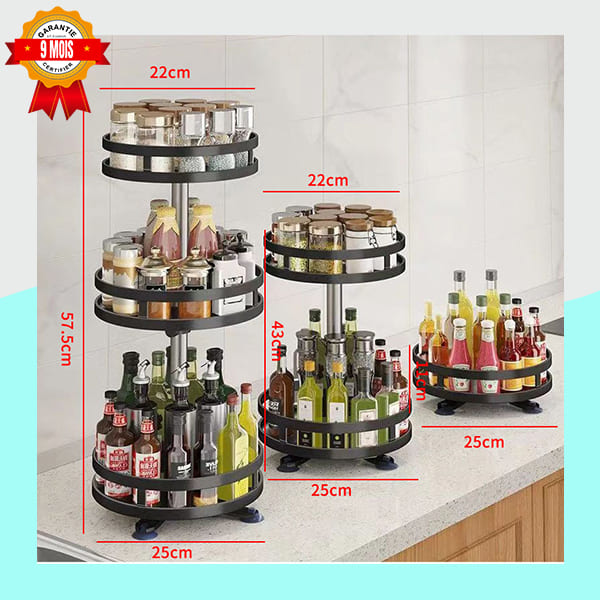 Dites adieu aux placards en désordre grâce à ce lot d’étagères pratiques. Elles sont équipées de plateaux rotatifs à 360 degrés, vous permettant de faire pivoter chaque niveau pour atteindre facilement les articles à l’arrière. La structure en métal noir et les montants argentés sont robustes et durables. Le bas des étagères est muni de ventouses pour une meilleure stabilité.