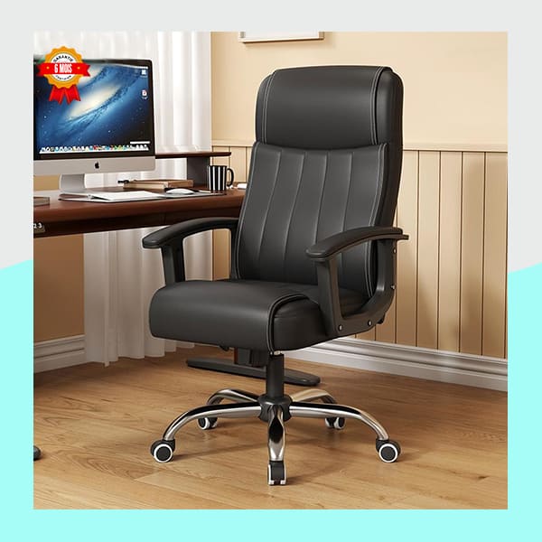 Son dossier haut offre un excellent maintien pour votre dos et votre nuque, favorisant une posture saine. L’assise généreusement rembourrée assure un confort moelleux pour une assise prolongée sans fatigue. Le revêtement en similicuir marron apporte une touche d’élégance classique et est facile à nettoyer.
