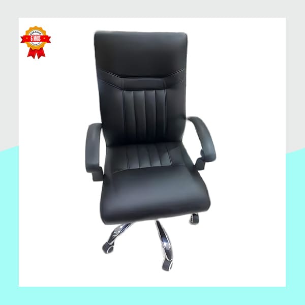 Son piètement stable à cinq branches en métal chromé assure une grande robustesse et une mobilité aisée grâce à ses roulettes souples. Son design soigné et ses finitions de qualité font de ce fauteuil un élément central de votre espace de travail.