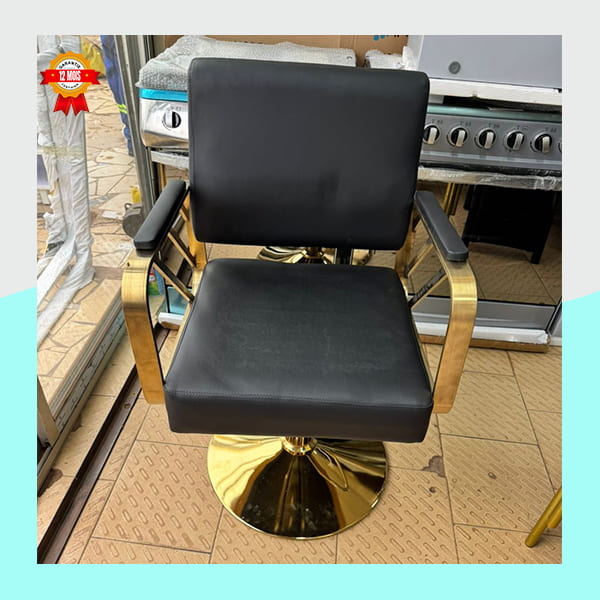 Ce fauteuil de salon professionnel allie esthétique luxueuse et fonctionnalité. Son assise et son dossier rembourrés en similicuir noir offrent un confort supérieur, tandis que sa structure en métal doré apporte une touche de raffinement à votre espace. Le pied circulaire assure une stabilité parfaite, et le repose-pieds intégré améliore l’expérience client. Idéal pour les salons de coiffure, instituts de beauté ou espaces d’accueil haut de gamme, ce fauteuil est livré avec une garantie de 12 mois, gage de qualité et de durabilité.