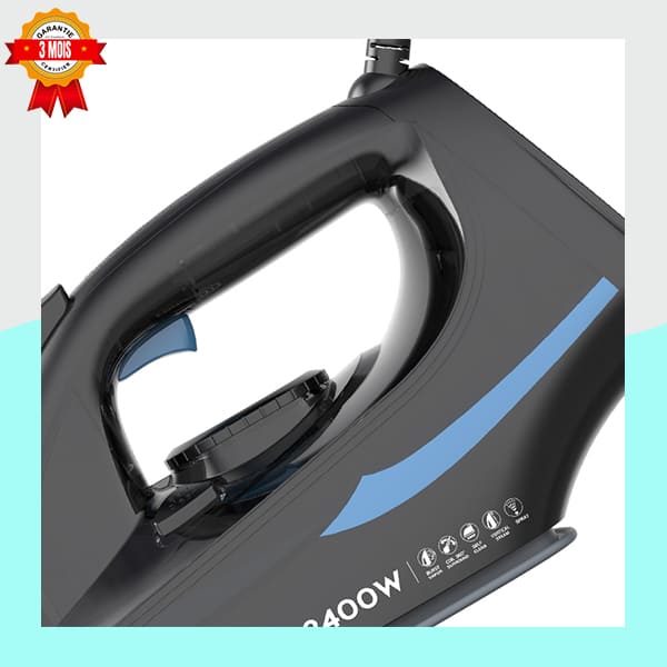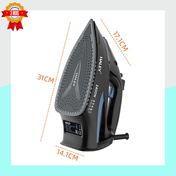 Le fer à repasser HALEY de 2400W garantit un repassage rapide et efficace grâce à sa puissance et sa semelle avancée. Son design moderne tout en noir avec des accents bleus offre une excellente prise en main. Idéal pour éliminer les plis tenaces sur tous types de tissus. Garantie 3 Mois incluse.