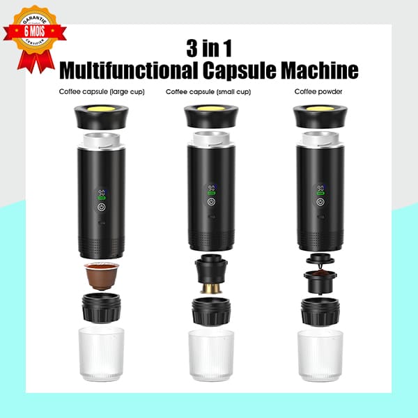 • Polyvalence Maximale : Compatible avec les capsules (style Nespresso) et le café moulu (adaptateur inclus), vous offrant une liberté totale dans le choix de votre café.