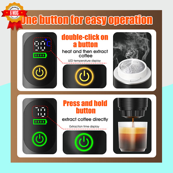 Savourez un expresso parfait partout avec cette machine portable innovante. Dotée d’un écran LED pour le niveau de batterie et la température, elle offre un fonctionnement simple à un bouton. Que vous utilisiez du café moulu ou des capsules, son système de chauffage intégré vous garantit un café chaud et délicieux, même en extérieur. Garantie 6 mois.