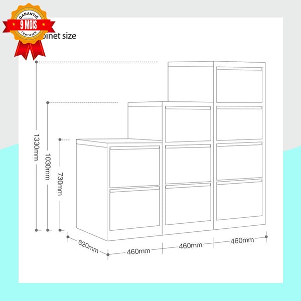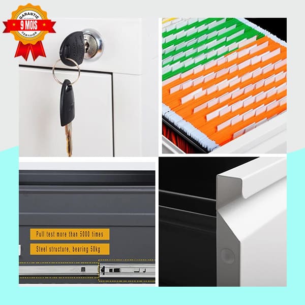 | Sécurité | Serrure centrale avec clés pour sécuriser tous les tiroirs |