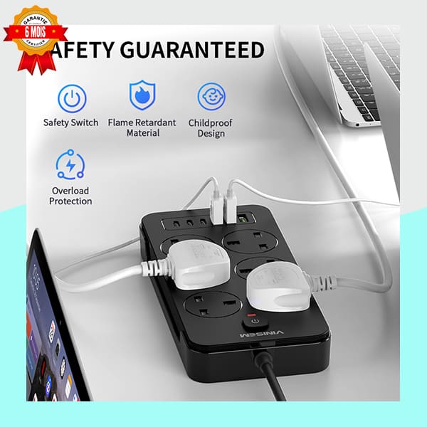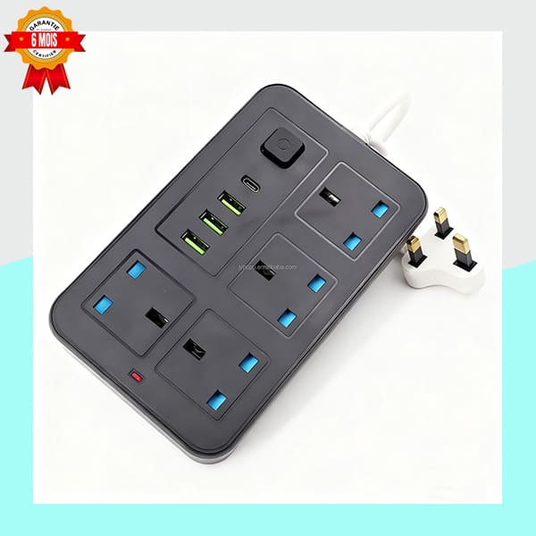 Optimisez votre espace et rechargez tous vos appareils simultanément avec notre Multiprise UK Garantie 6 Mois. Équipée de 4/6 prises universelles (selon le modèle) et de multiples ports USB (Type-C et Type-A) offrant une charge rapide de 5V/2.1A (10.5W MAX par port). Parfaite pour la maison et le bureau, elle combine sécurité, puissance et polyvalence.