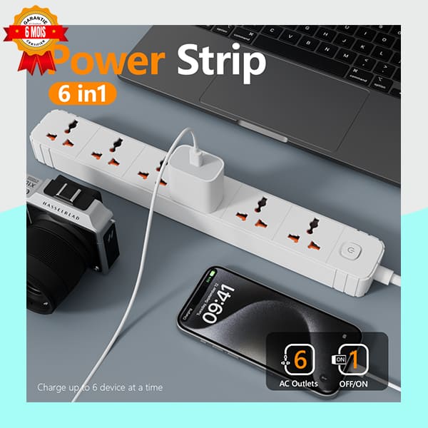 Multiprise Universelle 6 Voies avec Protection Avancée