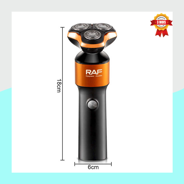 Profitez d’un rasage précis et confortable où que vous soyez avec le rasoir électrique rotatif RAF à 3 têtes rechargeable !