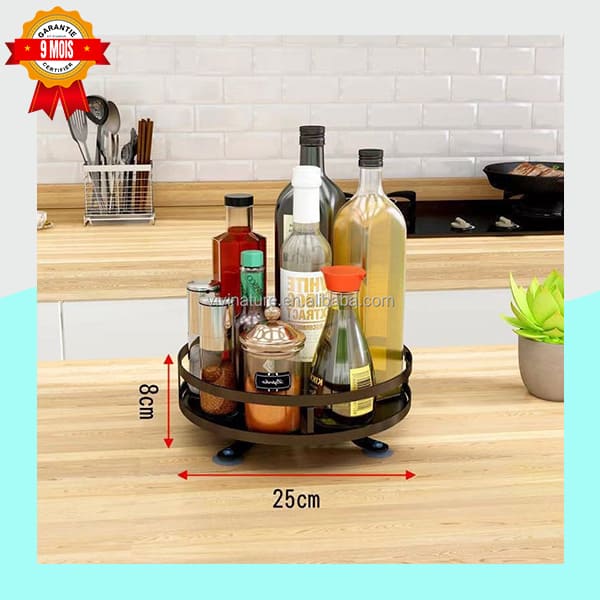 Cette étagère de rangement rotative est une solution astucieuse pour organiser votre cuisine ou votre salle de bain. Son design à deux niveaux, avec des paniers ronds et une structure en métal, est à la fois moderne et fonctionnel. Elle peut être placée sur un comptoir, dans un placard ou un coin pour un accès facile à tous vos produits.