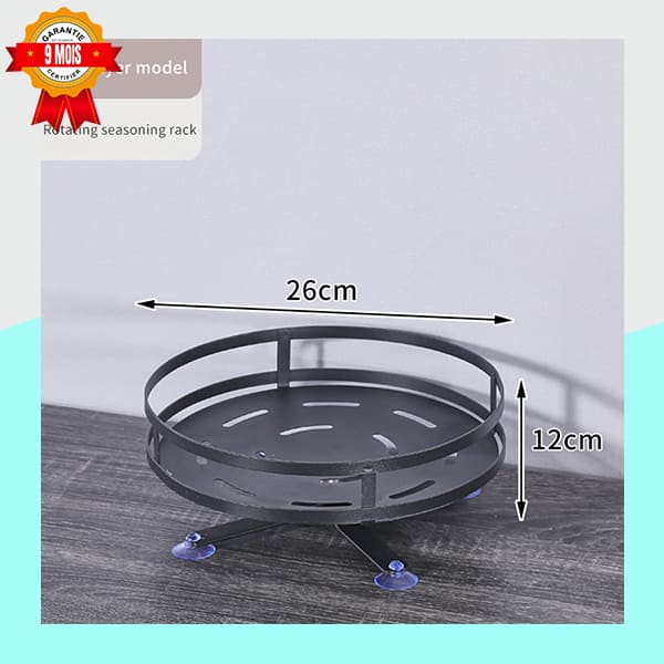 Dites adieu aux placards en désordre grâce à cette étagère pratique. Elle est équipée de deux plateaux rotatifs à 360 degrés, vous permettant de faire pivoter chaque niveau pour atteindre facilement les articles à l’arrière. La structure en métal gris et les montants argentés sont robustes et durables. Le bas de l’étagère est muni de ventouses pour une meilleure stabilité.