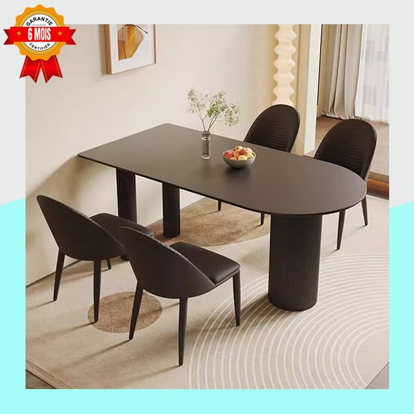 | Matériau des chaises | Tissu rembourré (velours ou similicuir) et pieds en bois (ou métal laqué) |