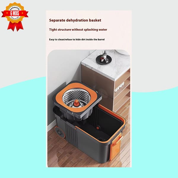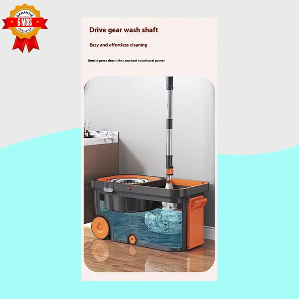 Révolutionnez votre nettoyage de sol ! Ce kit complet comprend un balai serpillère à tête microfibre rotative à 360° et un seau intelligent avec un système d’essorage centrifuge en acier inoxydable. Équipé de roues pour un déplacement facile, il assure un nettoyage efficace sans effort ni mains mouillées. Garantie 6 mois incluse.