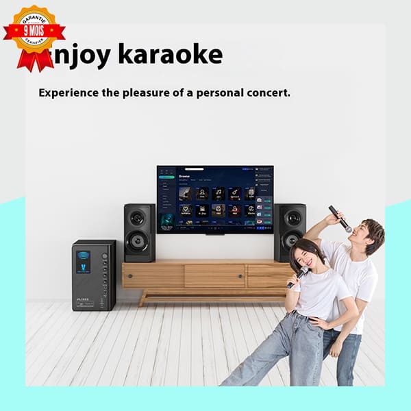 | Contrôles | Volume, Treble, Bass, Mic Vol, Echo |