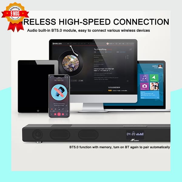 • Bluetooth : Diffusez sans effort la musique de votre smartphone, tablette ou ordinateur portable.