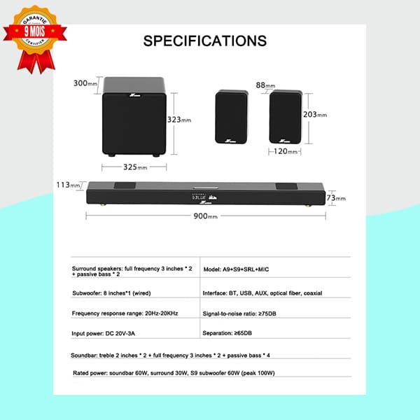 • Barre de Son Principale : Offre des dialogues clairs et des effets sonores précis. Elle est au cœur du système audio.