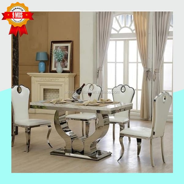 Cette table à manger est une pièce maîtresse pour un intérieur haut de gamme. Son design audacieux et ses matériaux brillants en font un meuble élégant et moderne qui impressionnera vos invités