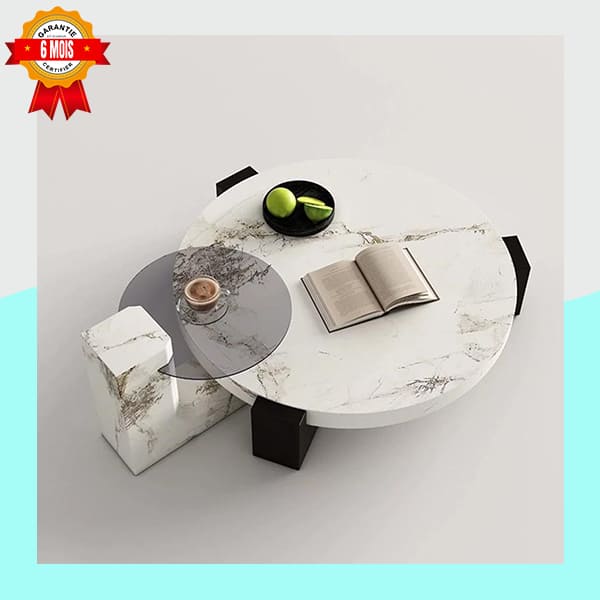 | Design | Plateau en verre · Structure dorée en spirale · Élément décoratif central |