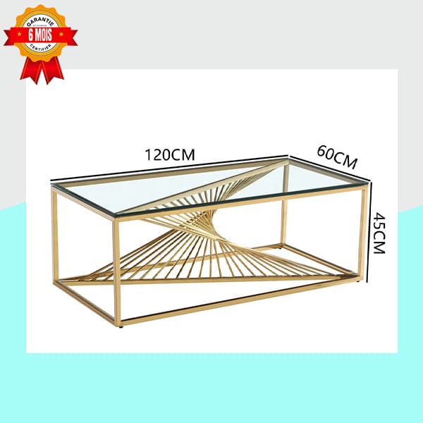 La Table Spiralis est une invitation à la contemplation. Son plateau en verre trempé repose sur une structure dorée aux courbes artistiques, évoquant une spirale ou un vortex stylisé. Ce détail central transforme la table en pièce maîtresse, idéale pour les salons raffinés, les halls d’accueil ou les espaces créatifs. Ses dimensions (120 × 60 × 45 cm) assurent une présence équilibrée, tandis que sa garantie de 6 mois renforce sa fiabilité. Transparente mais affirmée, elle capte la lumière et attire le regard.
