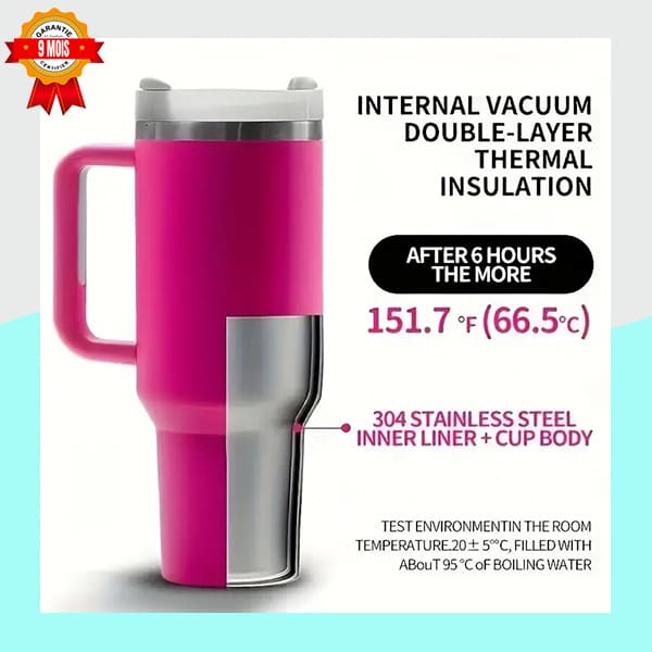 • Technologie Double Paroi Sous Vide : Testé en laboratoire, ce mug garde votre boisson à une température impressionnante de $66.5^circtext{C}$ (environ $151.7^circtext{F}$) pendant plus de 6 heures. Il est idéal pour votre café du matin ou votre thé de l’après-midi.