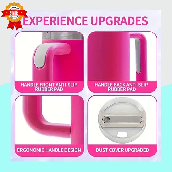 Découvrez notre Mug Isotherme XXL conçu pour les grandes soifs et le confort maximal. Fabriqué en acier inoxydable 304 avec isolation sous vide à double paroi, il maintient votre boisson à une température de $66.5^circtext{C}$ pendant plus de 6 heures. Sa poignée ergonomique est dotée de patins en caoutchouc antidérapants pour une prise en main stable et sécurisée, que vous soyez au bureau, à la maison ou en déplacement. Couvercle anti-poussière amélioré.