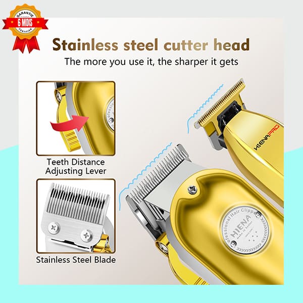 ✨ Kit Tondeuse Professionnelle HIENA PRO 2-en-1 Édition Or