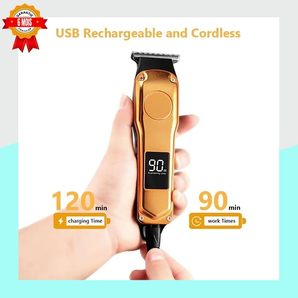 • Écran Numérique LCD : L’affichage numérique clair vous indique précisément l’autonomie restante (jusqu’à 90 minutes), vous assurant de ne jamais être pris au dépourvu au milieu d’une coupe.