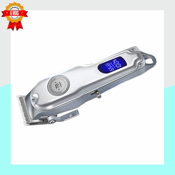 Ne craignez plus les pannes en milieu de coupe. La tondeuse est alimentée par une batterie haute capacité de 2000mAh, offrant une autonomie exceptionnelle pour plusieurs sessions de coupe. Le chargement est simple et pratique grâce au câble USB inclus. L’écran digital LCD est votre meilleur allié, affichant en temps réel le niveau de charge de la batterie (en pourcentage) et la vitesse de coupe.