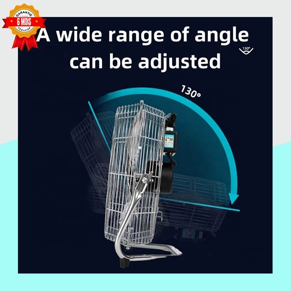 Ajustement de l’Angle à 130° : Le support permet d’incliner le ventilateur dans une large plage de 130°. Vous pouvez diriger le flux d’air directement sur vous ou vers le plafond pour faire circuler l’air dans toute la pièce.